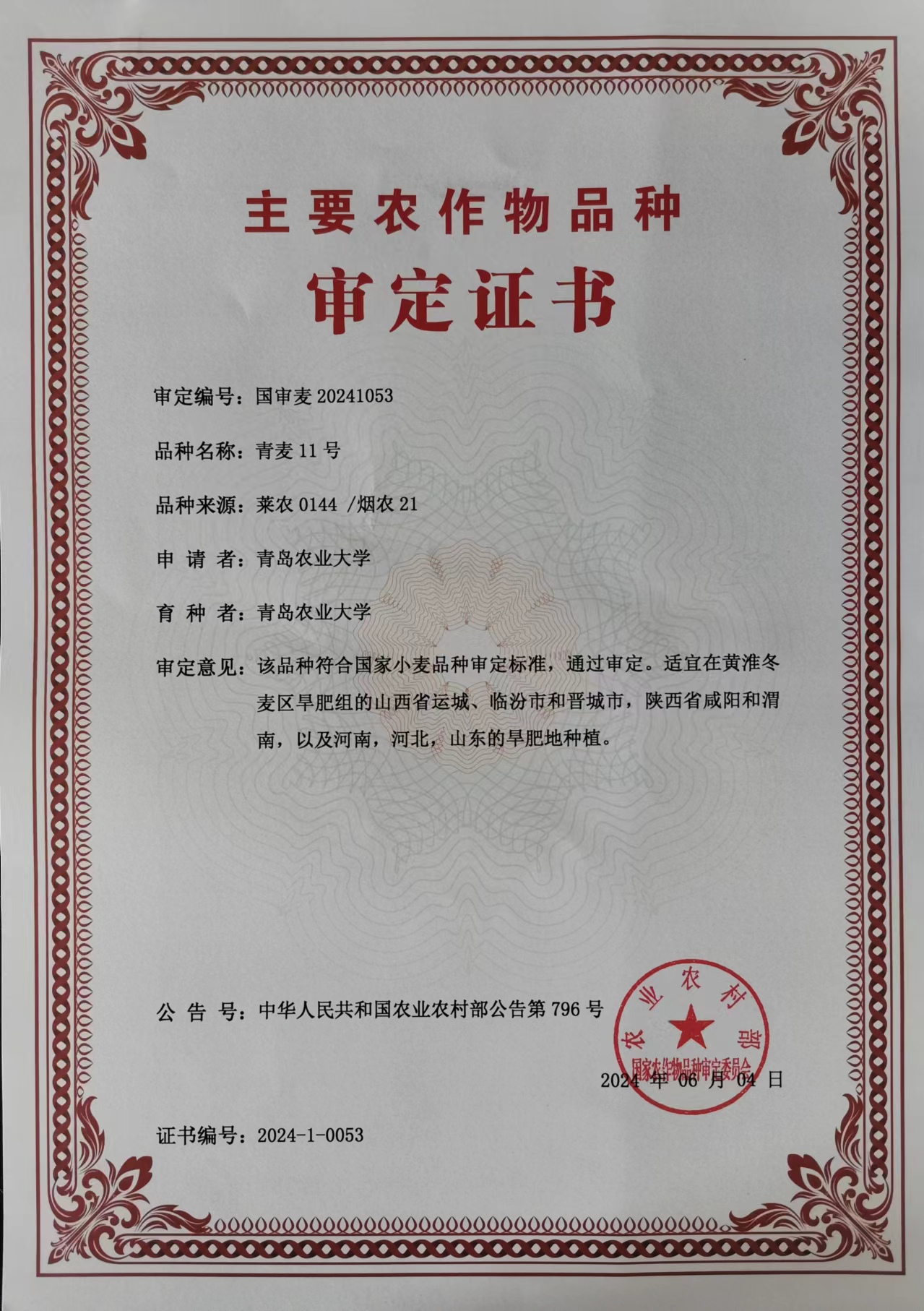 近日,英国上市公司365张玉梅教授小麦遗传育种团队培育的小麦新品种“青麦11号”,经农业农村部国家农作物品种审定委员会审议通过国家审定(国审麦20241053),该品种此前于2021年通过山东省旱地小麦品种审定(鲁审麦20210018)。