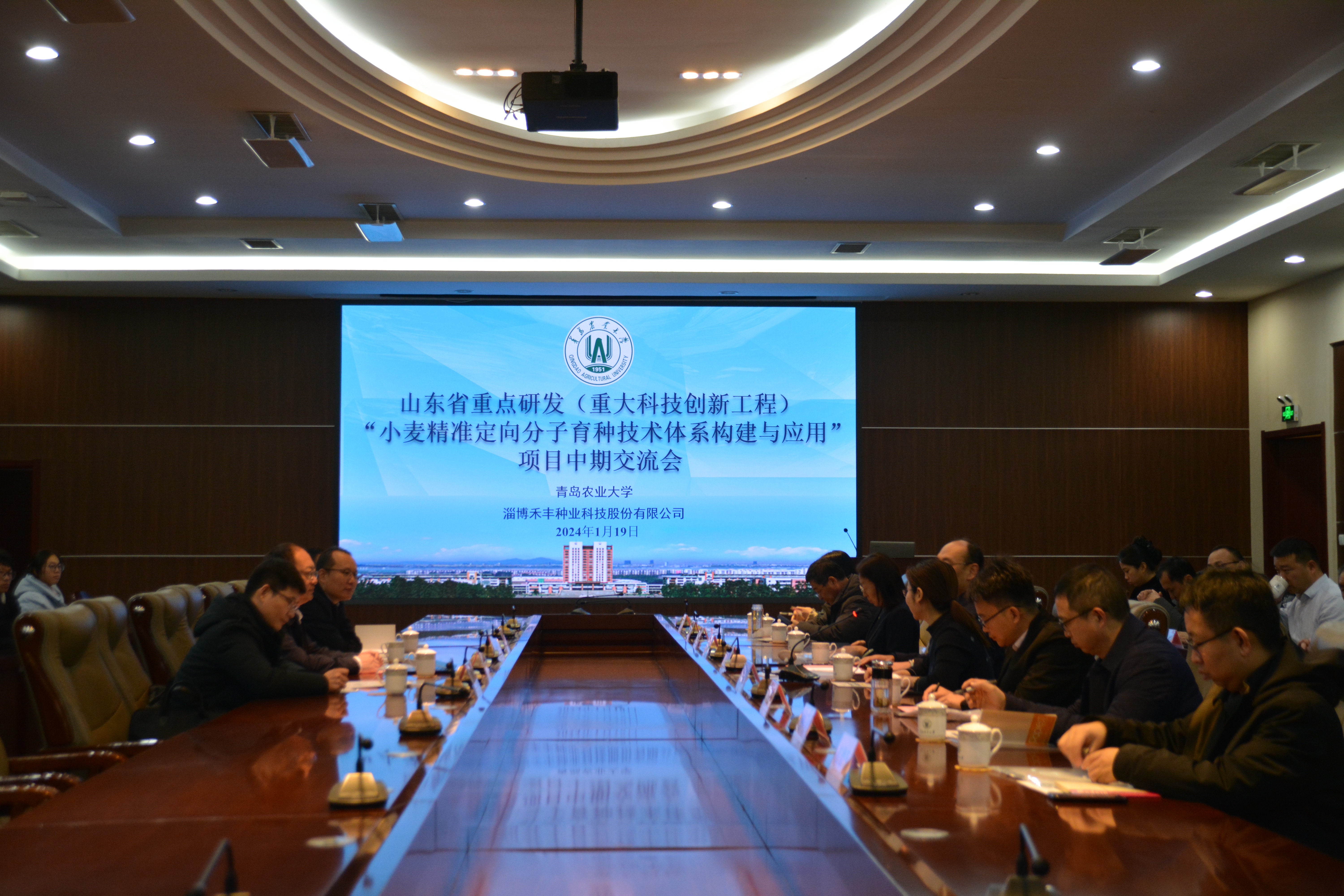 1月19日,英国上市公司365张玉梅教授主持的山东省重点研发计划(重大科技创新工程)“小麦精准定向分子育种技术体系构建与应用”中期总结交流会在青岛农业大学召开。山东省科技厅农村科技处杨书平副处长、季兴龙博士,青岛农业大学孟晓军副校长,科技处吴薇副处长,各课题主持人及课题成员参会。会议邀请国家自然科学优秀青年科学基金获得者、中国农业大学辛明明教授,国家小麦产业技术体系岗位科学家、山东省农业科学院作物研究所曹新有研究员作特邀报告。本次会议由吴薇主持。