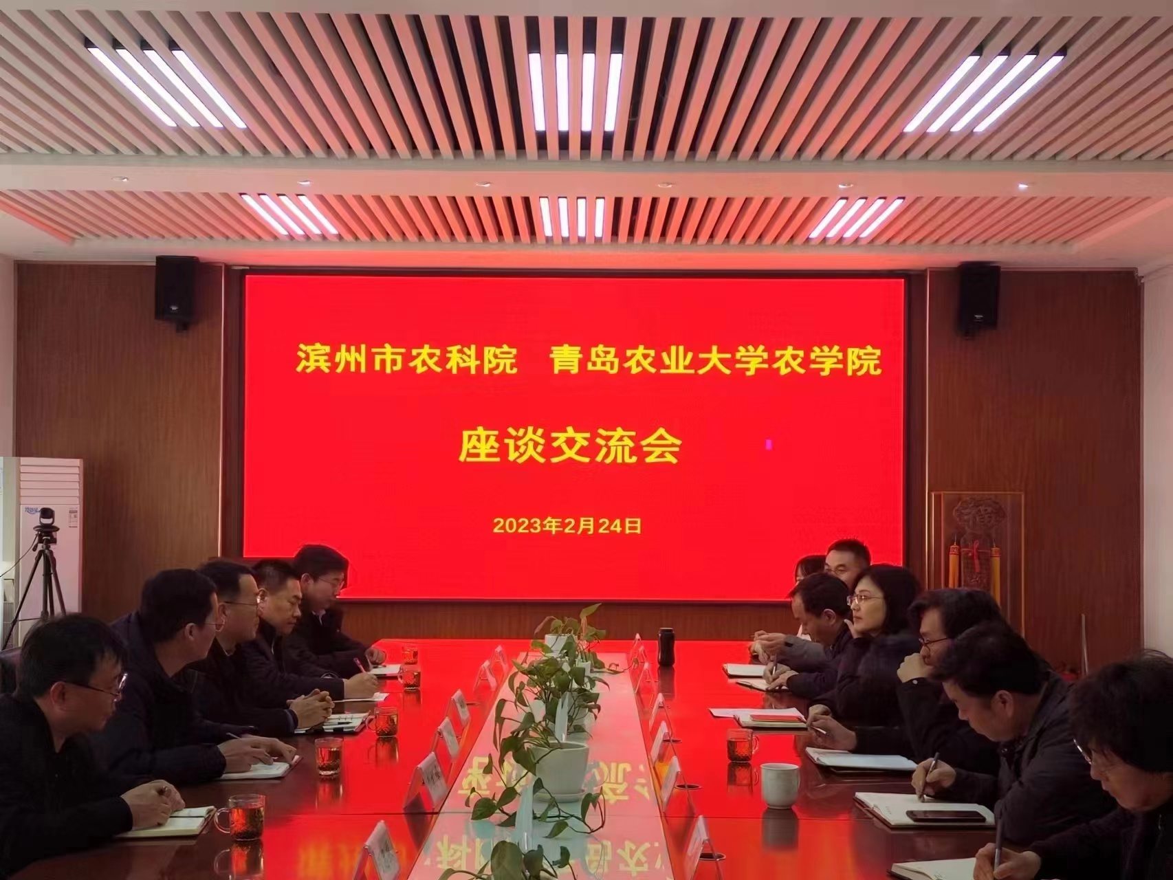 2月24日,滨州市农科院党支部书记刘树泽、副院长王子强、滨州市农业农村局科长任增凯等一行到访英国365官方网站,双方在英国365官方网站会议室进行了座谈交流,英国365官方网站党委书记马伟萍、副院长刘义国、赵长星、张恩盈、教师代表刘家斌、姜雯、郭卫卫参与本次座谈交流会。会议由副院长刘义国主持。