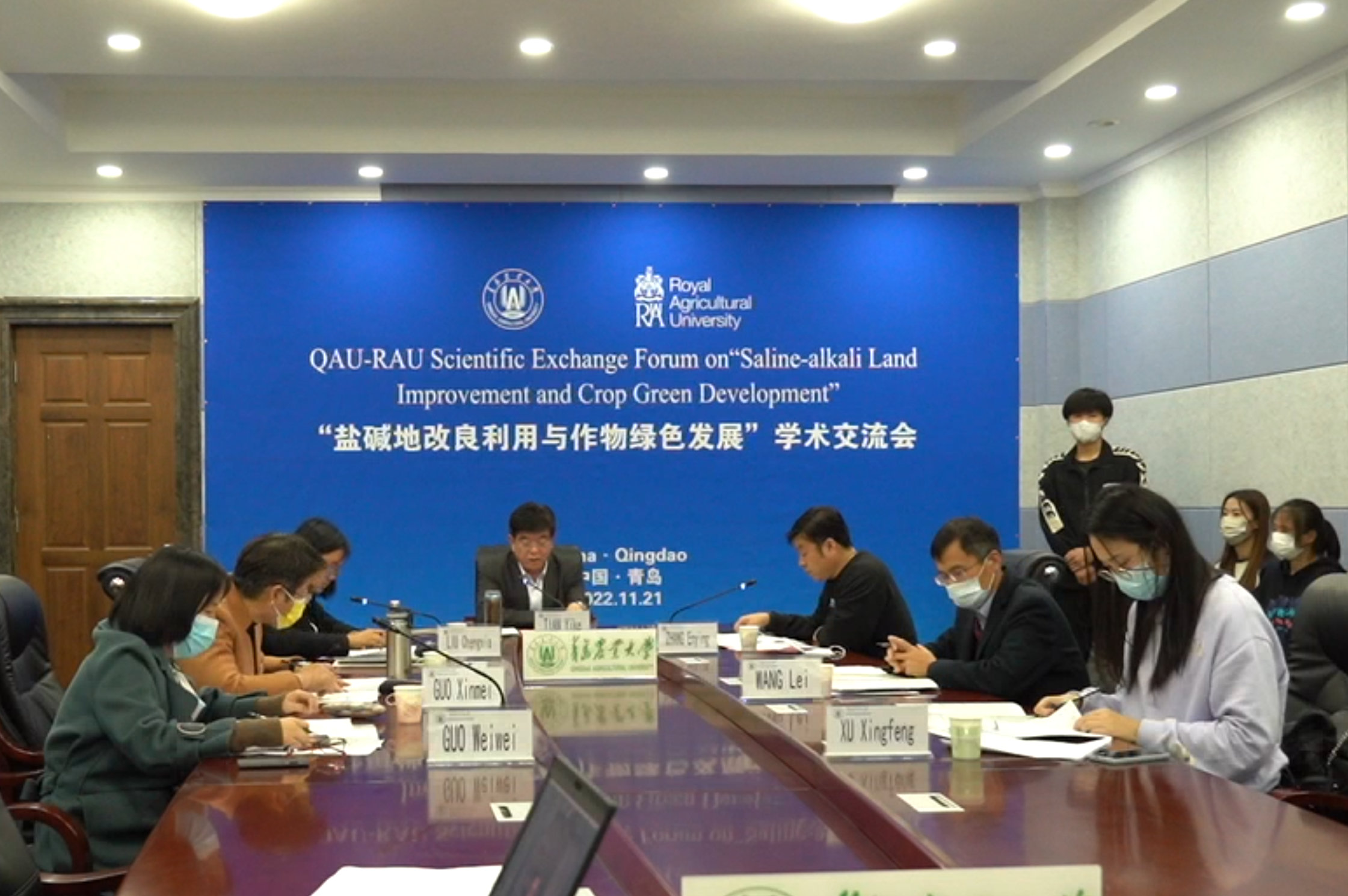 为保障国家粮食安全,着力解决盐碱地综合利用技术难题,2022年11月21日下午,“盐碱地改良利用与作物绿色发展”国际学术交流会在青岛农业大学国际交流中心举行。英国皇家农业大学常务副校长Neil Ravenscroft教授、副校长常显民教授,青岛农业大学党委委员、副校长田义轲教授出席开幕式。本次会议由英国365官方网站承办,采用线上线下相结合的形式进行,学校部分老师、学生参加会议,会议由英国365官方网站副院长张恩盈主持。