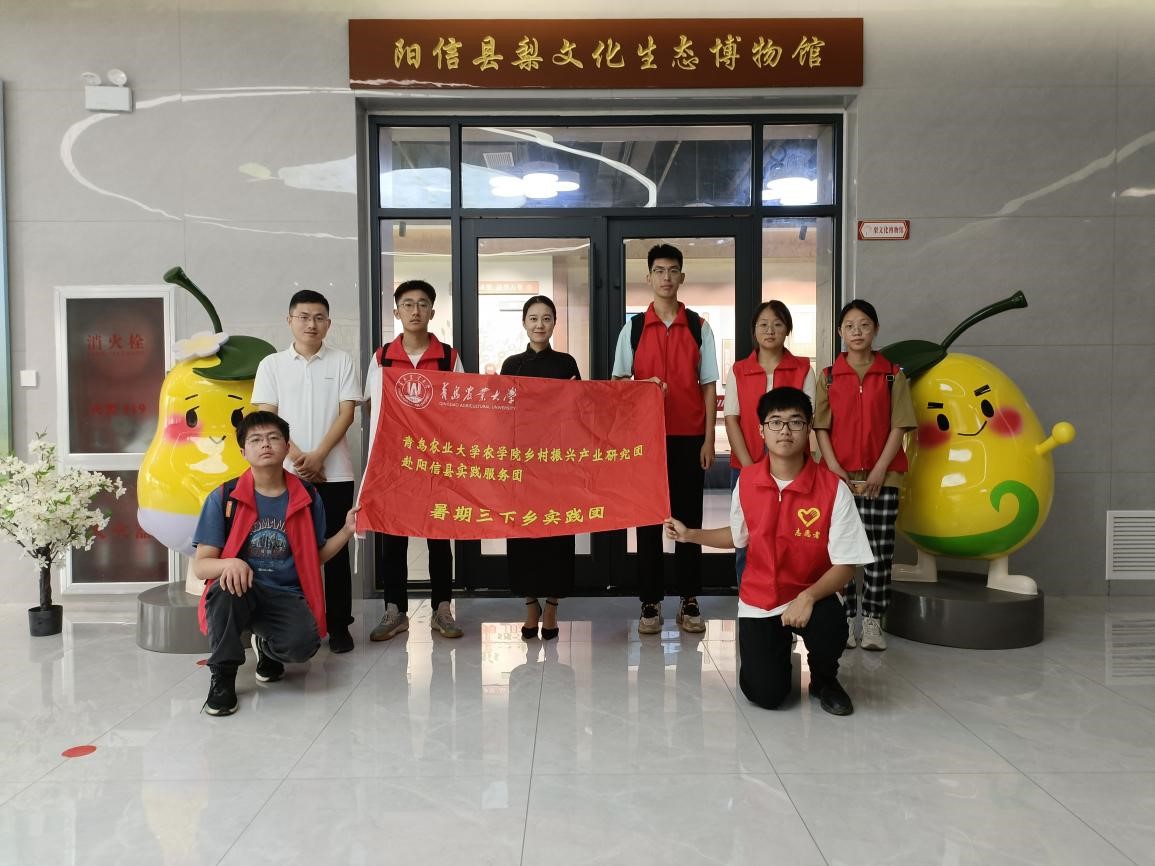 奔赴梨乡,投身实践。11日,调研团来到了阳信县农业农村局梨产业研究办公室,办公室主任杨超讲述了阳信县梨产业的发展现状,并指出,阳信县的梨产业正朝着“高标准、数字化、智能化”的方向发展。通过和杨超主任的交谈,调研团进一步确立了调研的方向和分工。12日至13日上午,调研团一行前往劳店种质资源圃、阳信县中润绿丰媚梨园区和宋希昌果园进行实地调研,详细了解阳信县梨种植模式、梨产品种植种类和水肥一体化系统技术,与园区工作人员对梨种植的概况、管理方式和存在的问题进行了深刻探讨。调研团成员了解到先进的种植技术和完善管理体制机制,改善了梨果质量,提高了梨树产量和产业发展效益。随后,调研团参观了阳信县梨文化生态博物馆,通过与现场工作人员的交流,调研团成员深刻体会到阳信县梨文化的深厚底蕴和产业融合对产业发展的推动作用。13日下午至14日上午,在杨超主任指导下,调研团对调研成果进行归纳总结,撰写调研报告。调研团成员意识到,在调研过程中,要注意调研的方式方法,善于发现和思考问题,有条理地进行记录和总结。