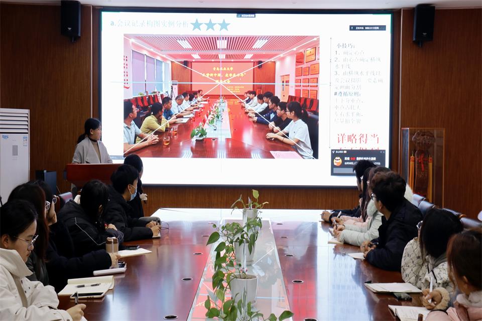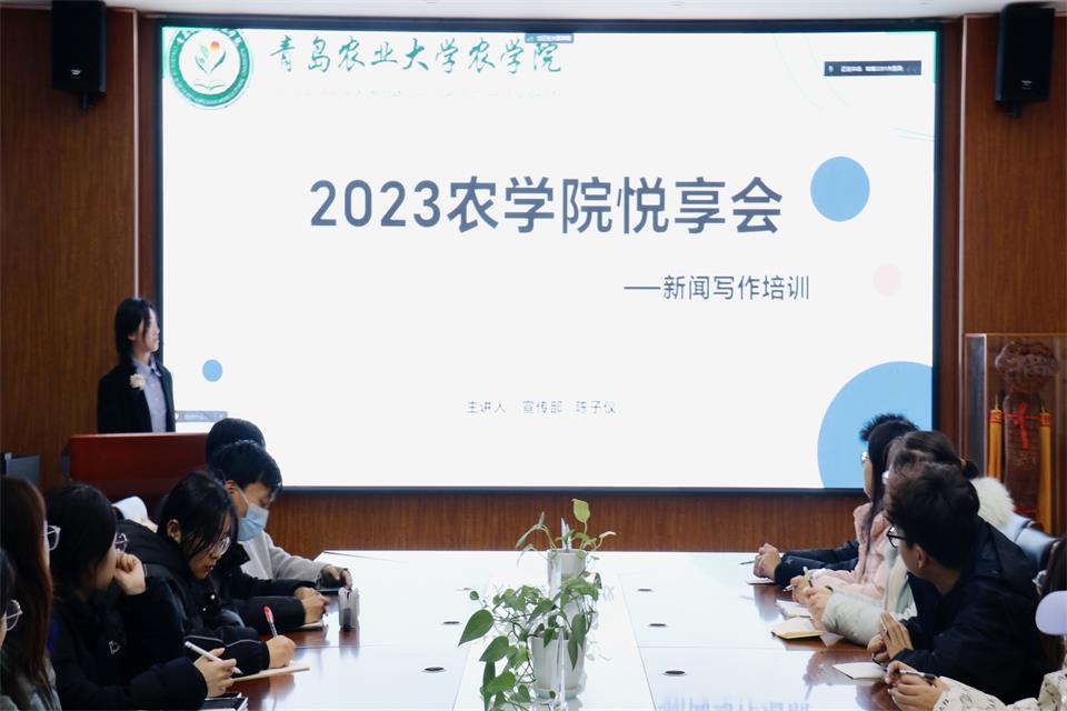 会议伊始,陈子仪从新闻定义开始,详细讲解了新闻的结构及每一部分的写作要求,结合自身写作经验分享了新闻写作的方法,并辅以实例说明了新闻写作的注意事项,同时指出在新闻写作中必须牢牢把握住“时”、“度”、“效”三个关键点。刘芳铭分享了拍摄的基础知识和技巧,重点讲解了相机的使用、会议拍摄的关键点和日常活动的拍摄方法三个方面的内容,以日常活动的实例对拍摄构图展开了详细的介绍,并对拍摄过程中所出现的一些问题给予同学们有针对性的建议,以便同学们更好地去完成学生活动的拍摄工作。会议最后,李宪翔指出同学们要以此次悦享会为契机,积极参与学院新闻投稿工作,在实践和学习中不断提升自身的新闻写作水平,讲好农学故事,传承农科精神,为更好地展示出英国365官方网站学生的精神风采,贡献出自己的一份力量。