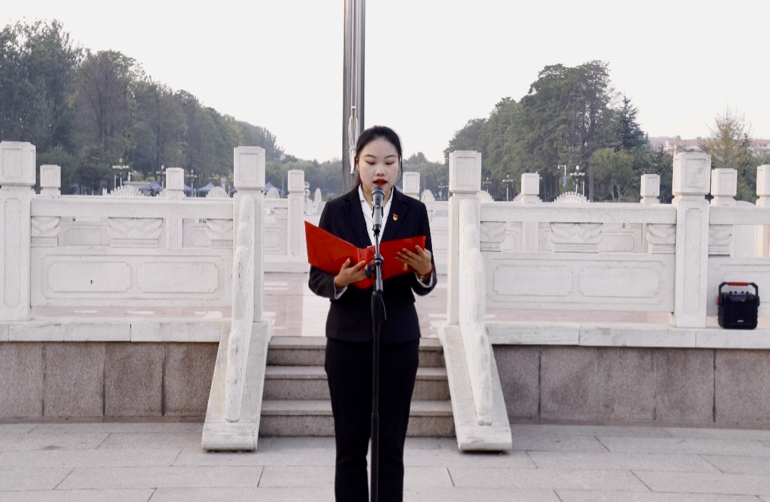 六点二十,国旗护卫队以昂扬的姿态、坚定有力的步伐,护卫着鲜艳的国旗迈向升旗台。伴随着庄严的国歌,五星红旗冉冉升起,迎风飘扬。现场师生向国旗致以庄严的注目礼,深情表达对伟大祖国的热爱。
