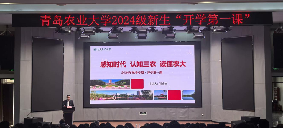 孙庆杰以“感知时代、认知三农、读懂农大”为切入点,从“征程如歌,何为大学”、“大国三农,使命召唤”、“强国复兴,农大何为”、“轻松拿捏,你好大学”四个方面进行讲授,引导新生充分认识农业强国的重要性。课上,孙庆杰立足"莱农精神"从发展坐标、校史校情、使命追求、杰出校友四个方面向同学们详细介绍青岛农业大学,并结合学校近年在学科建设和科学研究上取得的成就,增强了同学们对学校的归属感与认同感,激发了同学们爱校荣校的热情。孙庆杰鼓励同学们牢记习近平总书记“强农兴农”的殷切嘱托,将个人理想融入国家发展大局,积极投身现代化农业建设,以实际行动践行爱国主义精神。最后,孙庆杰就“如何成为‘大写’的青农人”向2024级学生提出六点建议:一是坚定理想信念,做志向远大的青农人;二是砥砺品格意志,做品行正大的青农人;三是敏于求真求知,做学问博大的青农人;四是奋楫笃行争先,做担当重大的青农人;五是团结融通协同,做视野宽大的青农人;六是坚毅自信宽和,做自我强大的青农人。