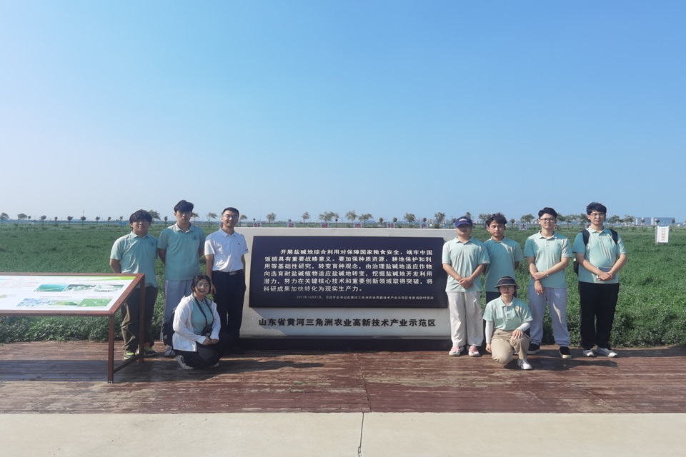 在工作人员的带领下,实践服务团沿着习近平总书记在黄河三角洲农业高新技术产业示范区的考察足迹,来到了盐碱地农业试验示范基地,学习节水控盐灌排新模式、不同耐盐梯度品种修复植被对比实验,了解水肥一体化、节水滴灌等农业技术在田间的实际应用。实践服务团参观了山东省大豆品种耐盐性鉴定试验、盐碱地耕地质量和产能提升平台—FAO小区、作物田间标准化耐盐鉴定平台—盐池、水—肥—盐调控系统控制室。