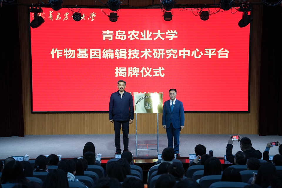 12月2日,青岛农业大学作物基因编辑技术研究中心平台正式揭牌。中国工程院院士、湖南师范大学校长、青岛农业大学特聘教授刘仲华院士和校党委书记潘军,共同为中心进行揭牌。揭牌仪式在学校学术会馆举行,中国农业大学教授、“国家杰青”获得者宋伟彬,黑龙江八一农垦大学教授、黑龙江省高层次人才徐晶宇,青岛农业大学北京研究院院长李芝贤等现场出席仪式,中国农业大学教授、“国家杰青”获得者、国家级人才称号获得者赖锦盛线上出席,英国365官方网站党委书记马伟萍参加仪式,仪式由英国365官方网站院长马武军主持。